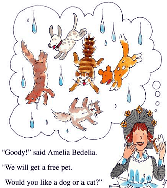 - The protagonist and title character of the Amelia Bedelia books by Peggy Parish is the patron saint of this trope and the former namer. It's her entire shtick and the entirety of the plot: her employers give her a list of instructions and then leave, and by the time they're back she's dusted the furniture (with dusting powder), dressed the chicken (in a gingham dress), and drawn the curtains (quite a decent likeness)... Fortunately for her continued employment prospects, she's a very good cook.