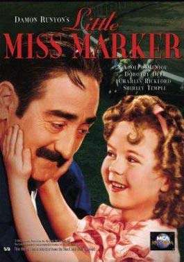 In Little Miss Marker, a 1934 film directed by Alexander Hall from a Damon Runyon story, Shirley Temple stars as a little girl whose father leaves her as a marker for a $20 bet. When Temple's father never returns (desperate for the bet to pay off, he kills himself when it doesn't), the bookie and confirmed bachelor (Adolphe Menjou) is stuck with the precocious moppet. Not surprisingly, she wins over the hearts of all the race-track ruffians, including Menjou's tough guy partner (Charles Bickford) and his moll (Dorothy Dell).