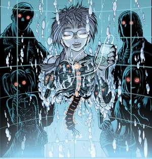 - Body Horror: In order to hack and modify her own neural configurations to alter things such as her personality and emotions, Stem Cell had to pop out one of her own eyes with a screwdriver. After changing her personality to an optimal state, she eats off most of her smartware skin in order to vomit it up as fire generating hyper-replicating nanomachines, which she calls her babies.