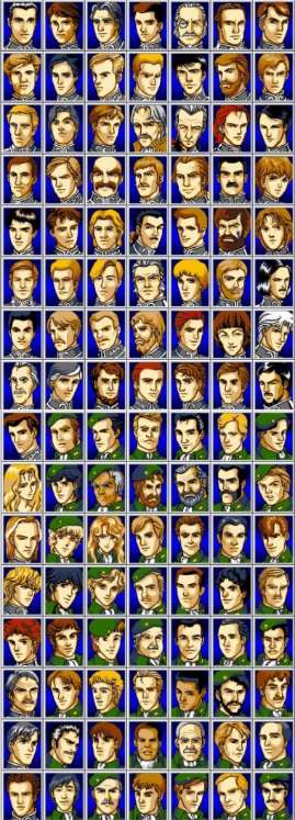 - Legend of Galactic Heroes, whose cast list is often compared to a phone directory. True, it's a record holder for a longest OVA in history, but in four seasons of its main storyline and countless spinoffs it managed to assemble up to 660 named characters, many of them regulars, and about hundred MAIN ones. It reaches the point where the characters names are placed on the screen for the viewers benefit. The picture above only covers a tiny fraction of the cast.
