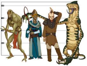 - ↑ For the purposes of non-game settings, an NPC race is defined as a civilized race who has no characters above the level of a mentor in importance.