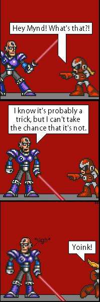 Demolisher: (throws a grenade, Lion-O braces himself, but it releases smoke) A harmless toy for a harmless boy. Unlike the one behind you! (Lion-O turns around, Demolisher hits him) Ha ha ha! You fell for the oldest trick in the book! |
