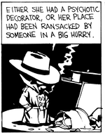 - Apart from the Calvin and Hobbes page image, another Calvin and Hobbes example would be Calvin saying "either mom's cooking dinner or someone got sick in the furnace duct."