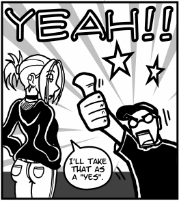 - My Eyes Are Up Here: "Yeah. And so is your hair. What's your point?"