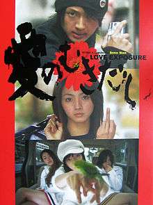 Love Exposure is a 2008 film by Shion Sono of Suicide Club fame. It clocks at in three minutes shy of four hours long. It focuses on the themes of family, love, lust, religion, and upskirt photography.