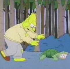- Grandpa Simpson chasing a tortoise that has his false teeth.