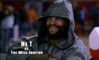 - Not Another Teen Movie has a parody of a Magical Negro in the "Wise Janitor"...played by Mr. T.