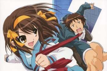 - Suzumiya Haruhi takes the lemony and unreliable narrator, Kyon, and gives him a girl who just wants to have fun. In a Tsundere-ish way. A mild subversion though, in that poor Kyon doesn't really want to pursue a relationship with Haruhi. She drags him along though, because he's nearly the first person who isn't put off by her attitude.