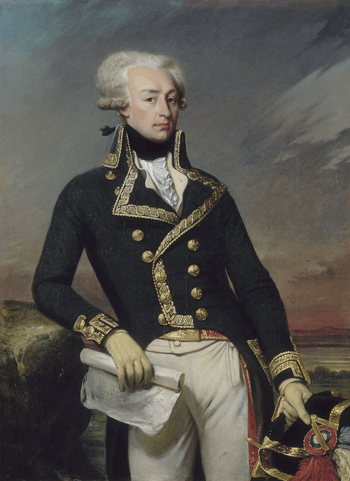 Got a Big Damn Heroes when he disappeared for a bit to only show up again with the French Fleet, blockading the British Fleet and their troops causing them to surrender and win the American War for Independence. Very well liked, he helped in the Treaty of Paris that ended the war and proceeded to find two new causes, Abolitionism and reform in France. He led parts of the early French Revolution to try and reform the system, but lost when the Jacobians became too powerful to ignore. Spent parts of the period imprisoned, then in political exile. He refused offers to govern Louisiana in order to attempt to reform France.