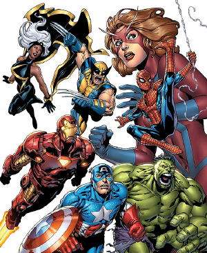First launched in 2003, Marvel Adventures is a line of Lighter and Softer comics featuring some of the company's top characters and set outside of the 616 canon that most Marvel Comics characters inhabit. Each issue contains a story that's finished by the end of the last page (though setups for larger larger arcs sometimes occur), and does so in a lighthearted fashion where everything usually gets back to the way it's supposed to be. Likewise, its setting allows it to completely ignore such world-changing events from the main comics, such as Civil War.