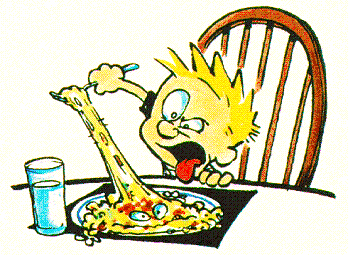 - In one of the Myth Adventures stories, Skeeve, having never seen spaghetti, describes it as white worms or snakes covered with blood red sauce.