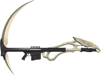 - No More Heroes 2: Desperate Struggle: Margaret Moonlight has a pair of weapons called "Le Croissant du Ange" [sic], or The Crescent of Angels. One is pictured above. These are sniper rifles with stocks that are scythes.