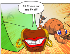 - One D&D book (containing ready-to-use NPC's for various occasions) contained such a group of adventurers: a troll fighter (full plate but fights with claws) an ettercap cleric (rather smart for an ettercap but Int isn't his casting stat anyway) a pseudodragon sorcerer (ditto) a phase spider rogue (who needs lockpicks when you can pass through walls?) and an umber hulk monk (who fights blindfolded, purely by tremorsense, to protect his teammates from his gaze). A Ragtag Bunch of Misfits if ever there was one, but rather friendly if you don't attack right away.