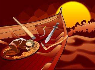 - Scyld Scefing, the legendary ancestor of the Danish royal lineage is described as arriving this way in Beowulf.