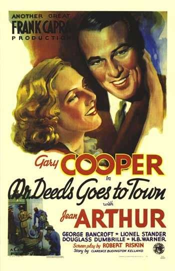 Mr. Deeds Goes To Town is a 1936 classic film directed by Frank Capra, which won him the second of three Oscars. It stars Gary Cooper as Longfellow Deeds, a smalltown tuba player who is suddenly left a massive fortune by his rich uncle. He moves to the big city, where everyone wants a piece of his fortune. Intrepid Reporter Babe Bennett (Jean Arthur) meets Longfellow, initially exploiting his simpleness to advance her journalistic career but gradually finding herself falling for him. However, it's the Deeds family attorney, the scheming Mr. Cedar, whose greed will provide the biggest obstacle for Mr Deeds.