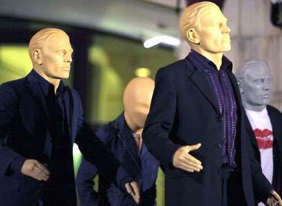 - The Twilight Zone episode "The After Hours". This angle is played up throughout the episode, although it's somewhat averted at the end when it's revealed that the main character is a mannequin who got the chance to experience human life, and now it's another mannequin's turn.