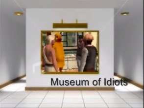 Museum of Idiots is a sort of highly surreal sitcom, detailing the lives of four characters who all live in the same boarding house. They are The Student, ambiguously intended to be Arkenholz from Strindberg's Ghost Sonata; Chickensuit McChickensuit, attorney in a chicken suit; Mr. Blacktar, who is always weeping and screaming, and Aristotilian God, who is unaware of the presence of anyone but Himself, and spends all His time contemplating His own magnificence. Most episodes deal with the former two, because they are the only ones capable of speaking coherently. Other recurring characters include Chester, a swamp creature who sells moonshine, Terrence, The Student's schoolchum who, for no explained reason, is a Grey alien, and Adolf Hitler, whose presence is never really explained, but has a mancrush on The Student.