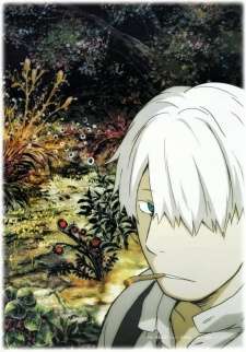 - Anachronism Stew: The exact setting and time period is kept deliberately vague, but it resembles feudal (or possibly mid-to-late 19th century) Japan, in mostly rural areas. There are some odd artifacts, though, such as Ginko using scientific equipment far in advance of what was generally available at the time (like a wooden microscope!), not to mention his very Western-style clothing.