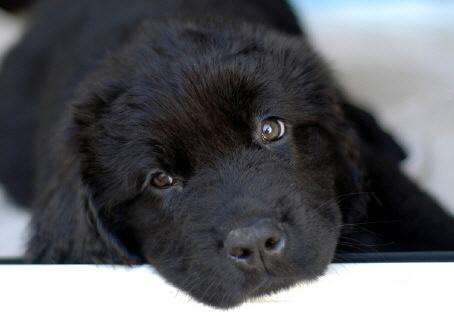 - Big Friendly Dog: Mother Theresa, Sarah's brother's Newfoundland (same breed as the trope pic) that is afraid of water.