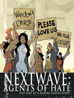 - Reconstruction: Ellis' earlier The Authority was basically the JLA without all that pesky Thou Shall Not Kill nonsense. As indicated by the page quote, Nextwave is pretty much that, except with lots more irreverent parodies of the Marvel universe and much more explosions.