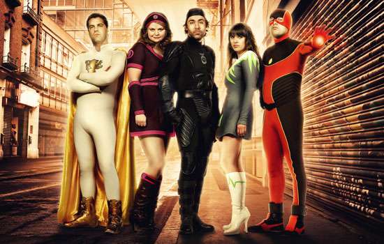 The series is set in modern-day Britain, in what the opening describes as "a normal city with one small difference: there are superheroes". They're pretty much common-place, with powers ranging from super strength to controlling monkeys, and since the public knows about them, they just hang out in capes all day. Our main characters themselves are a group of "capes" who meet after work in The Fortress — the pub where superheroes go to unwind and where there are "No Masks, No Powers, No Heroics", hence the title.