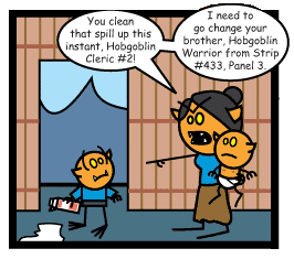 - Lampshaded yet again, when Hobgoblin Cleric #2 complains that he could've become someone important too, if his mother hadn't named him Hobgoblin Cleric #2.