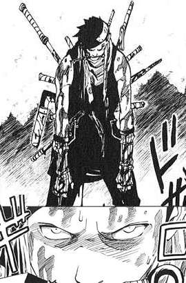 - In One Piece, the greatest example has to be Roronoa Zoro. This man according to the Word of God lost what amounted to five liters of blood fighting Hatchan, mostly due to an earlier wound given by the greatest swordsman in the world, Dracule Mihawk, who stabbed him in his heart and slashed him across the chest, permanently scarring him just to finish him off. Mihawk seemed to sense he was Badass enough to survive by asking him to surpass him and challenge him again.