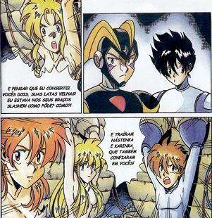 Detailed summaries and scans of this series can be found at O Ácido Cinza, provided by one Rodrigo Shin; an overall summary of the convoluted plot and characters can be found here, at the Mechanical Maniacs. And now, a translation of the entire series by the Optical Internet Translation Gang is available here.