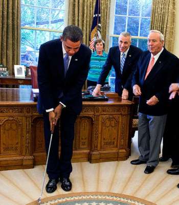 One sure sign of being an out-of-touch upper echelon manager or mafioso is that you bring your golf clubs to work, so you can practice your putting rather than actually pay attention to anyone who's talking to you.