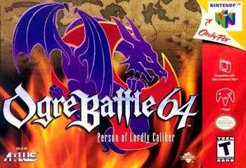The third game released in the Ogre Battle line (yet stated to be the "sixth" in the story canon), Ogre Battle 64: Person of Lordly Caliber was released on the Nintendo 64 in 1999 (Japan) and 2000 (North America). It goes back to the Real Time Strategy style of game play that the first game in the series has and away from the similar to Final Fantasy Tactics gameplay that Tactics Ogre was.
