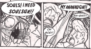 The effectiveness of this moment can be affected by the difference between their usual competence and confidence levels and how completely they are boned. Characters with low self-esteem or who are constantly crying out in terror are difficult (but not impossible) to make this trope work with. But that arrogant, so far unbeatable supervillain suddenly realizing he's about to have his ass royally kicked? It's easy to make that one work.