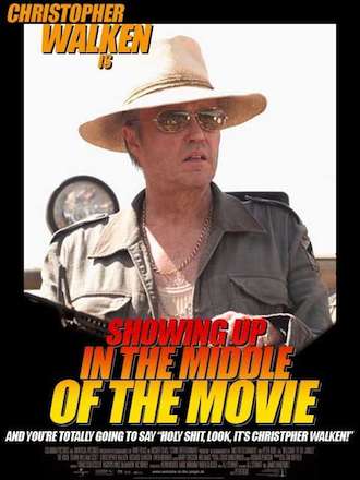 - Christopher Walken has a habit of appearing in small roles in just about anything. A good solid chunk of his roles are him just showing up in the middle of the movie, stealing a scene, and going on his merry way, as aptly illustrated by the poster atop this page. Walken is firmly on record as never turning down a gig, as long as he has the time in his schedule. It doesn't matter how good or bad your movie is, or how large or small the part is; you give him some money (and it doesn't have to be very much money, either), and Christopher Walken will show up and act.