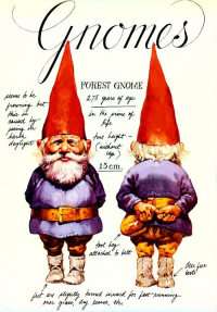 "Gnomes are not at all like garden gnomes, which are actually dwarves, a mistake that began in early fairy tales." |