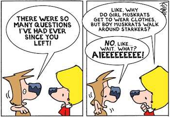 - Though whenever Ozy is shaved he has to wear pants, was actually the subject of one mini-arc. And there are numerous occasions where Millie dances naked in the rain.
