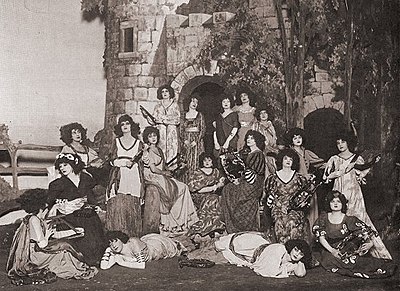 - Purple Prose: Parodied with the maidens who speak, for example, of the inner brotherhood of aesthetics being "consummately utter"; in other words, completely complete.