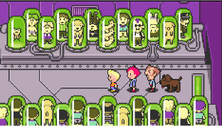 - EarthBound Zero also has people who have been kidnapped by aliens stuffed in tubes, making this a series-wide trope.