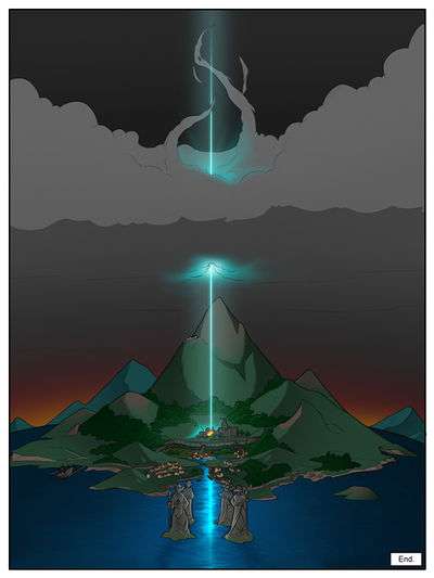 - In Twokinds, shattering the mana crystal in a Templar tower leads to one of these, as demonstrated by the page image.