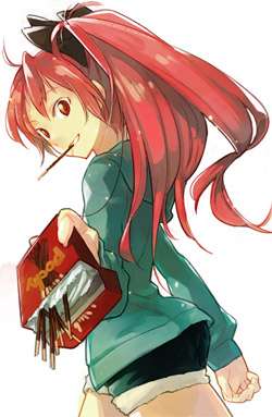 - Kyouko from Puella Magi Madoka Magica is a big fan of Pocky (and lots of other snack foods), and even plays DDR and fights while keeping a stick in her mouth. She even offers one to the local Dark Magical Girl to seal a bargain.