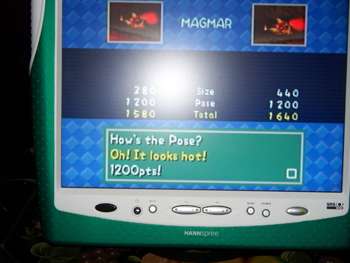 - Last Lousy Point: Goldeen can be rather annoying to photograph. It only appears in the canyon area, and you have to throw Pester Balls into the water to scare it out. This can take many Pester Balls, and once Goldeen DOES jump out, you have about half a second to mentally process that fact and snap a quick picture of it before it splashes back down again. Muk is pretty hard too, because once it's evolved the damn thing won't move!