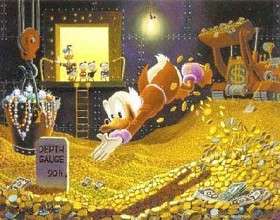 - Also, it only works with money, even for Scrooge. While diving around in his cash-filled train wagons in the second-to-last album of The Life and Times of Scrooge McDuck, he comes to an abrupt halt on a pile of coals.