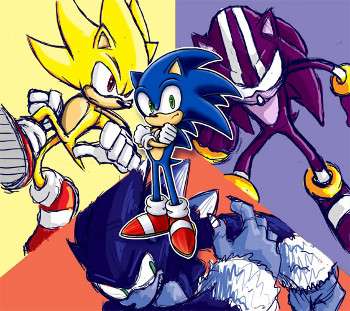 - Sonic the Hedgehog has his Super Form; after collecting the seven Chaos Emeralds, he turns gold and is basically invincible. Knuckles similarly goes from red to pink.