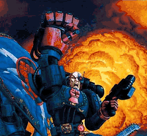 - The Trope Namer is Warhammer 40,000, where our friend in the picture above comes from, which features among its close combat weapons, massive mechanical fists a good three to five times regular size that are loaded with servo-motors that radically increase the user's strength and wreathed in an energy field that tears apart anything it touches on the atomic level. The game also features:
