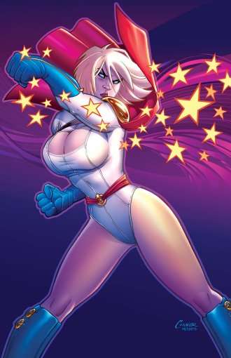 She is a member of the Justice Society of America and now has a new comic book, started in 2009 by Justin Gray and Jimmy Palmiotti and beautifully drawn by Amanda Conner. In it, she has reestablished her Secret Identity of Karen Starr and established the company Starrware, all the while mentoring Atlee, the new Terra, and trying to stop the Ultra-Humanite or really hot aliens from destroying New York. The series takes a Lighter and Softer approach to the character and the DC Universe at large, and focuses on Power Girl's attempts to reintegrate into living a normal life and forming a stable relationship with Terra.