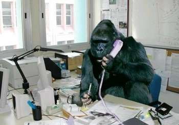 The tendency for animals to outperform their human coworkers in comedies. Most often takes the form of a gorilla or chimpanzee in a business suit who quickly climbs the corporate ladder after being hired. Power Suit Monkey can come in a few flavors: