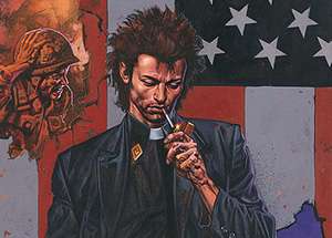 Violent, gory, absurdly blasphemous and very funny, Garth Ennis' Preacher tells the story of Jesse Custer, a down-at-heel Texan preacher whose life is turned around when he is cursed with The Word of God, which compels people to do whatever he commands. After finding out that God has abdicated His throne, Jesse sets out on a quest to bring him to task, joined by Tulip, his ex-girlfriend-turned-hitman, and Cassidy, an Irish vampire.