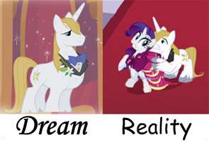 - My Little Pony Friendship Is Magic: Ever since "The Ticketmaster," Rarity had hoped to meet "him," Princess Celestia's distant nephew Prince Blueblood. It is not until "The Best Night Ever" that she finally meets him in-person during the Grand Galloping Gala. Unfortunately, Blueblood turns out to be a vain, stuck-up jerk, and after he uses Rarity as a pony shield against a flying cake, she finally gets fed up and chews him out for it.
