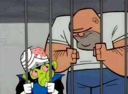- A disturbingly creepy running gag in The Powerpuff Girls is that villain Mojo Jojo is raped when he goes to prison by fellow inmates. The first example was the ending of "Cootie Gras", where in a large inmate glares meaningfully at Mojo as Mojo displays a worried look, while the narrator significantly says "Love is in the air! Can't you just feel it?" A similar scene happens in "Monkey See Doggy Two", only as Mojo is turned into a dog and sent to the pound, with another dog. Most recently, the 10th anniversary/final episode special "Powerpuff Girls Rule!" had one last shout-out to this running gag, as a fellow prisoner embraces Mojo much to Mojo's dismay. Wow.
