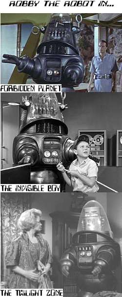 - Robby the Robot, as seen in the page image. Originally created for the 1956 film Forbidden Planet, Robby continued to be reused in many movie and TV productions up to the present day (although since the 1960s a lightweight replica has been used). Its two appearances in Lost in Space are particularly ironic in that Robby and Robot B-9 were both designed by Robert Kinoshita. Robby is so memorable that it is less a prop and more of an actual character. Along with all the sci-fi shows he turns up in, Robby also appears in of all things one of the NBC era Columbo episodes as a robot built by a child genius at a think tank. He's even listed on IMDb as an actual actor.