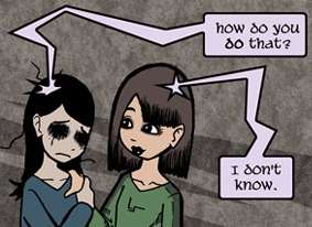 - Zimmy and Gamma from Gunnerkrigg Court can only speak with each other telepathically, since neither knows the other's language. In addition, Gamma's presence has some unspecified therapeutic effect on Zimmy's mind. It's implied that their psychic link was simply there the very first time they met.