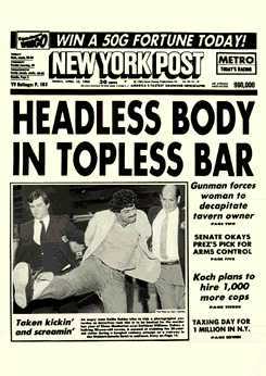 - A man goes into a strip club and chops off the head of the owner. The headline? "Headless Body in Topless Bar". It's one of the most famous headlines in the recent history of American journalism.